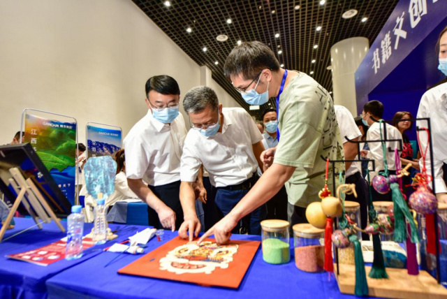 学院粮漆画项目作为科普活动展区现场展示交流项目,在展览期间大放异彩。江西省副省长罗小云、中国科学院江风益院士和各主办、承办单位的领导、嘉宾莅临学院粮食画展位参观指导,并对粮食画的精湛技艺给予高度赞许。在展览期间,来自省内各大媒体、抖音平台纷纷对学院项目进行了专题采访和报道。项目展览期间也吸引了多家企业积极前来咨询洽谈。通过本次参展,进一步扩大了学院社会服务力和影响力。
